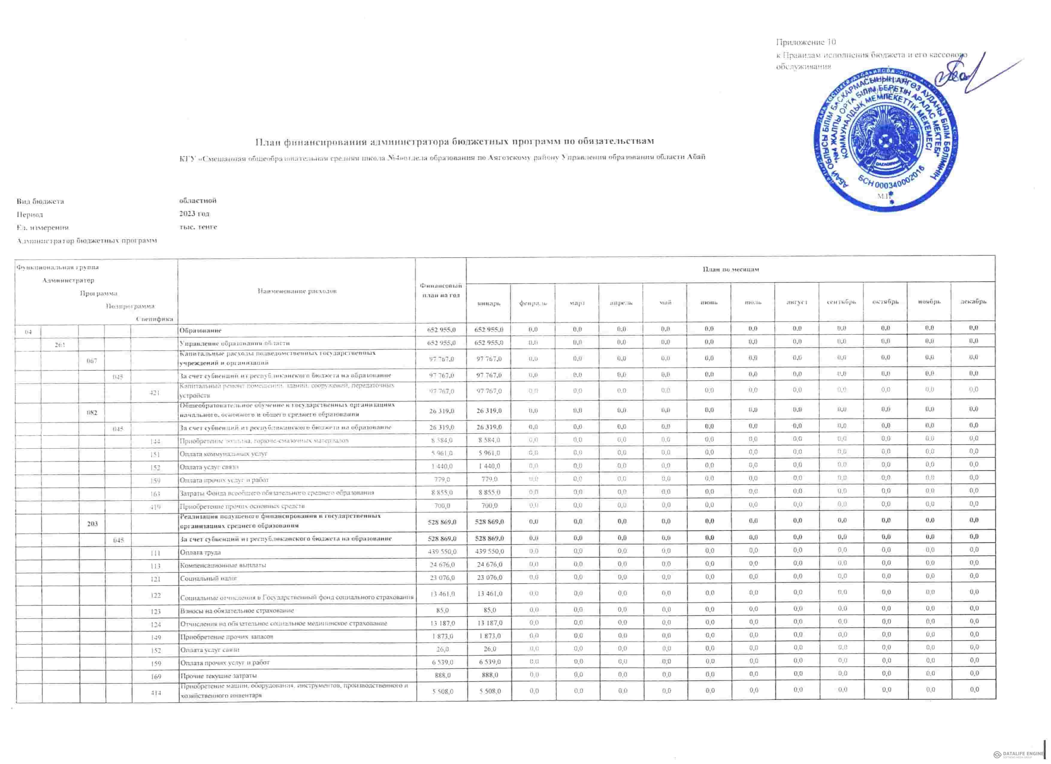 Мектеп сайты » Открытый бюджет » Абай облысы білім басқармасы Аягөз ауданы білім бөлімінің «№4 жалпы орта білім беретін аралас мектебі»КММ 2023 жылдық ашық бюджеті