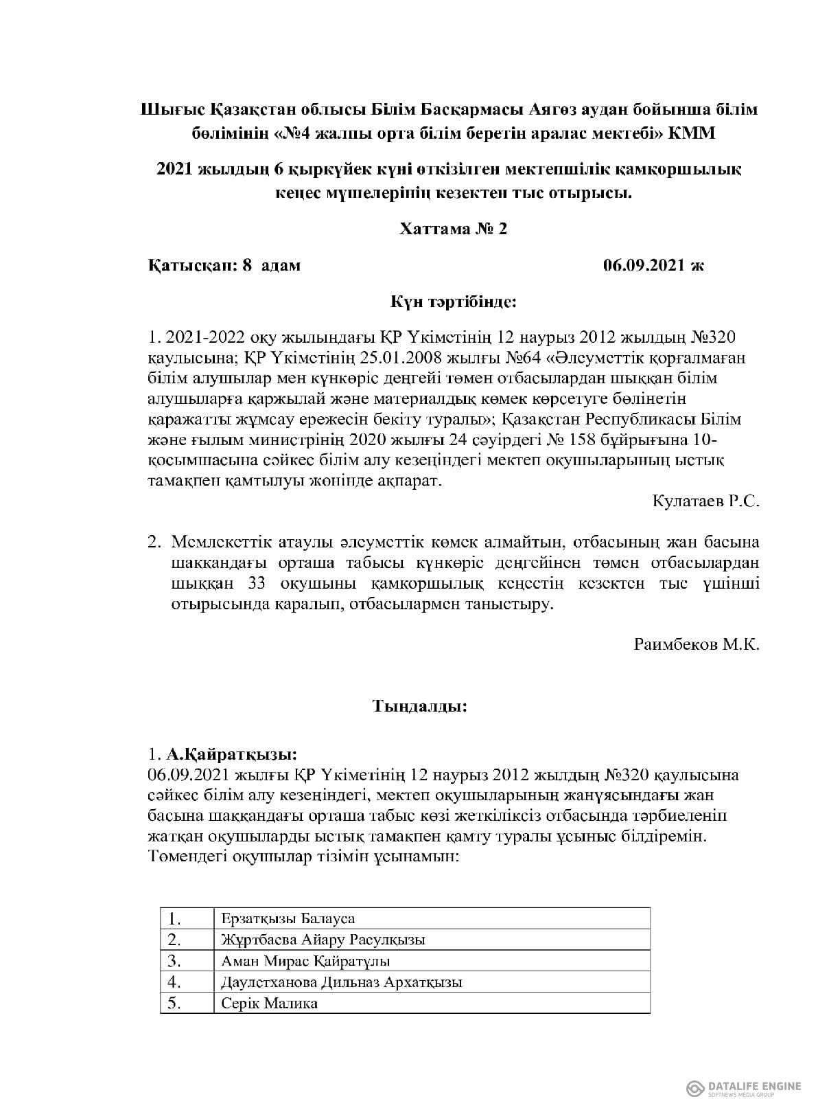Мектеп сайты » Питание » Мониторинг качества питания » 2021-2022 оқу жылының Қамқоршылық кеңес отырысы - Мектеп оқушыларының ыстық тамақпен қамтылуы туралы
