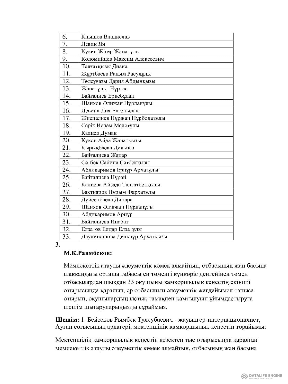 - "АДАЛ ҰРПАҚ", "ЖАС ҰЛАН"